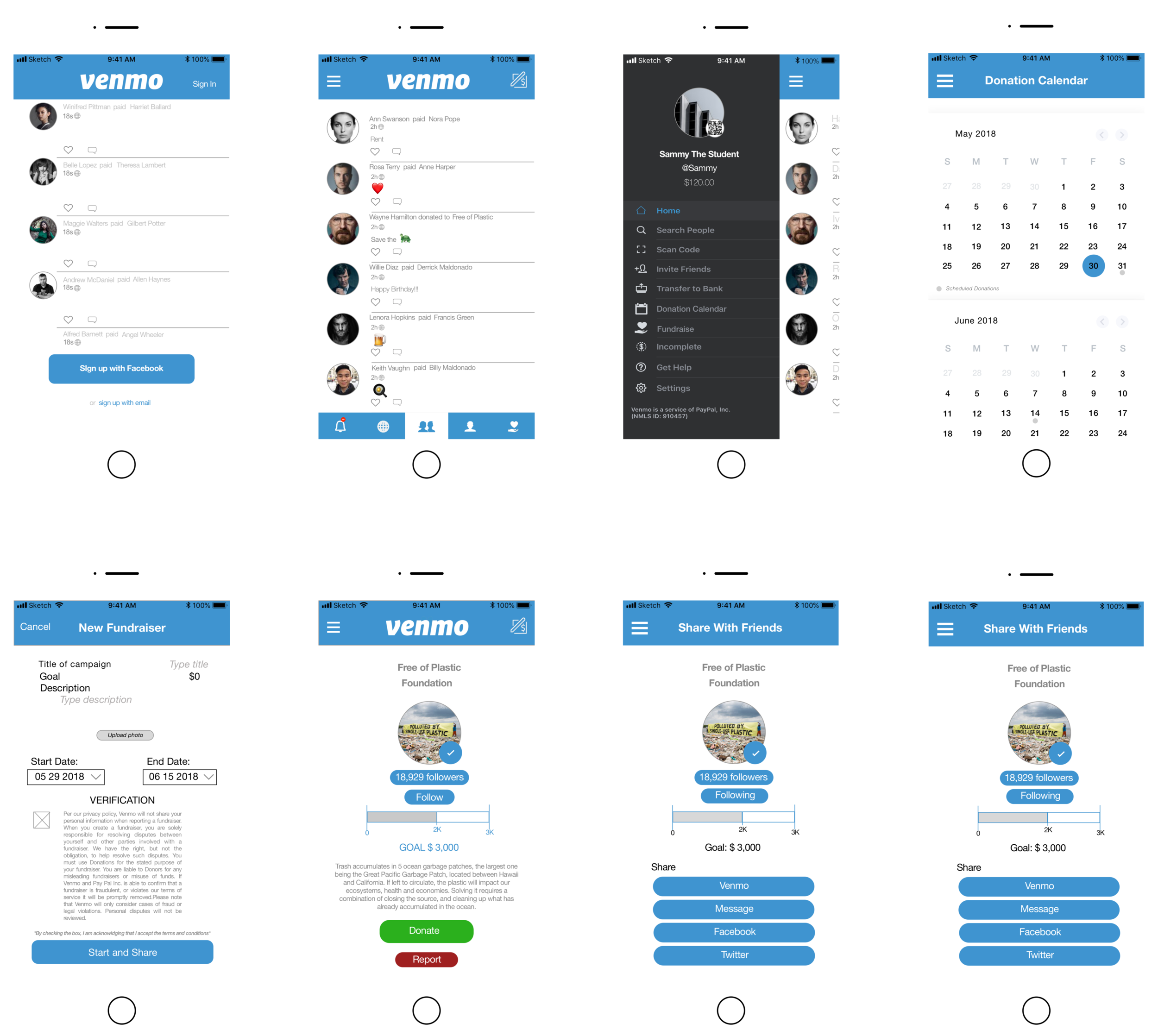 Incorporate a feature into the existing Venmo’s interface that would allow users to send money through Venmo to causes they care about, as well as allow users to start their own fundraisers or campaigns and be able to share with their friends.