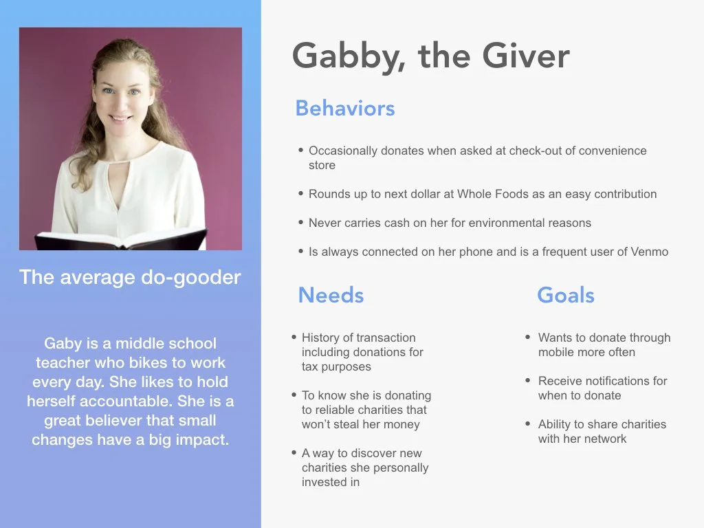 Through a series of user interviews we collected these key insights on what prevented our users from, finding the organization they wanted to contribute too, where they can make their contributions, finding a trusted platform to make their contributions and a fast and easy way to make their contributions.